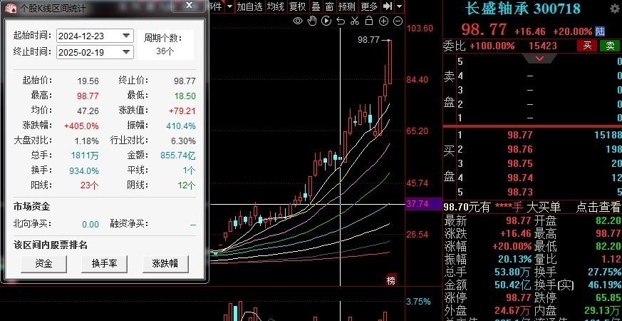 机器人板块大牛股长盛轴承“20cm”涨停, 股价续创历史新高,从12月23日至今,长盛轴承涨幅已经超过400%。此外冀东装备16天10板,杭齿前进继续缩量一字晋级5连板,长盛轴承、福莱新材、中大力德、江苏雷利等多股创出历史新高。